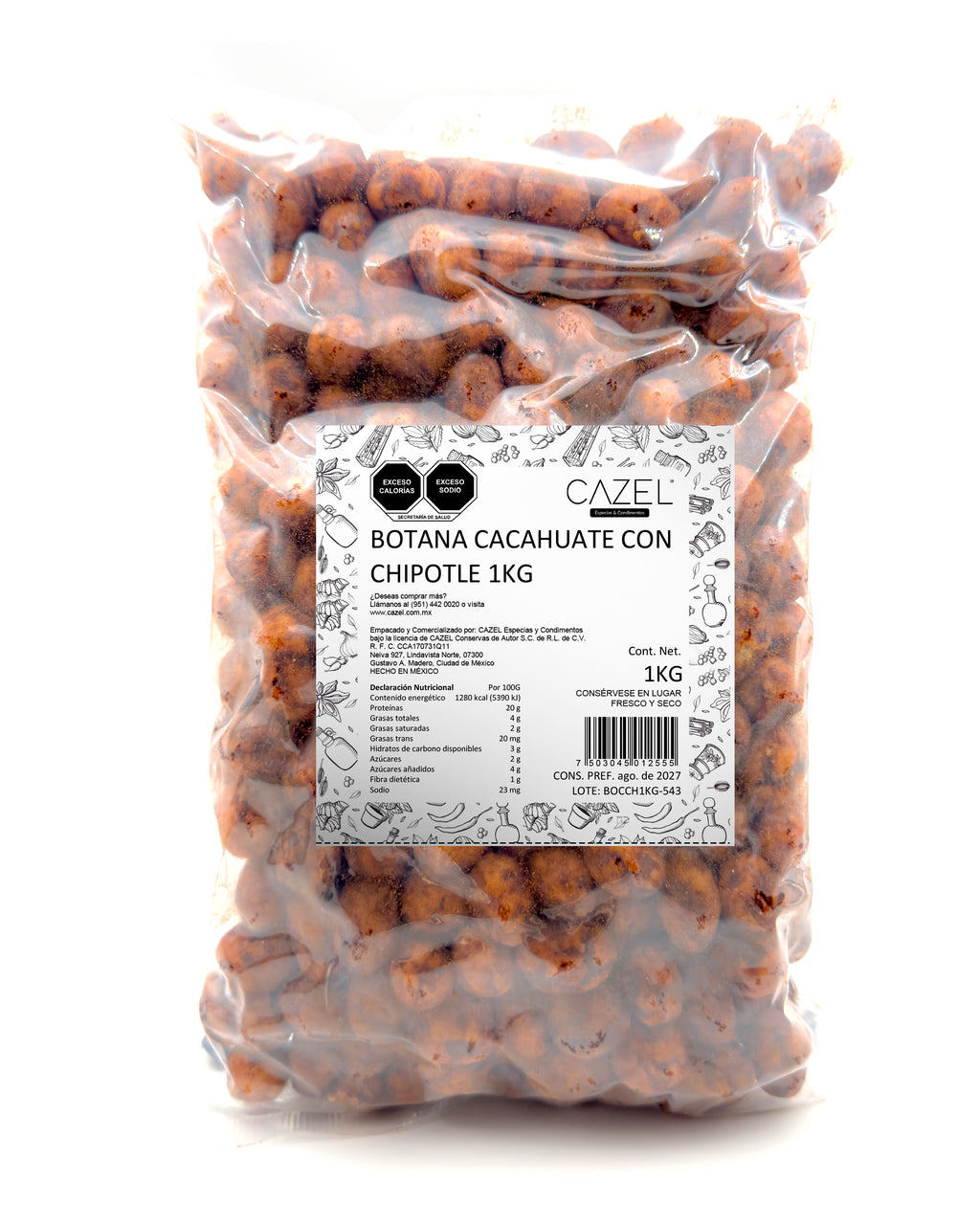 Este Cacahuate Estilo Japones Sabor Chipotle de 1KG combina el delicioso sabor del cacahuate con el toque ahumado del chipotle. Disfruta de un snack único con un toque de picante. Perfecto para compartir en reuniones, en el trabajo o en cualquier momento del día.